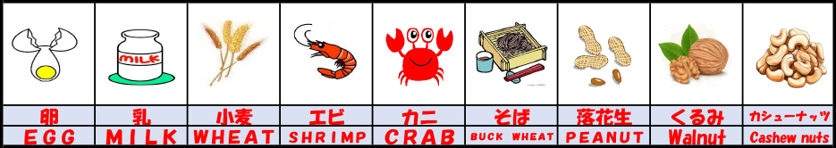 鸡蛋、乳、小麦、虾、螃蟹、荞麦面、花生、胡桃、加修坚果等9个品种以及