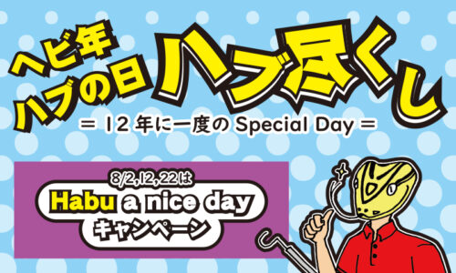 蛇年HABU(龟壳花蛇)之日HABU(龟壳花蛇)尽!※本次活动结束了。谢谢。12年一度的特别的“HABU(龟壳花蛇)之日”即将到来!大家在8月2日说:“8…