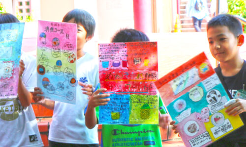 “传达我们城市的魅力”当地小学生画的海报展示在冲绳世界内,本地啤酒咖啡馆旁边的休息场所,当地南城市的大里南小学4年级学生为了作为地域学习传达自己地域(南城市)的魅力而制作的Pos…