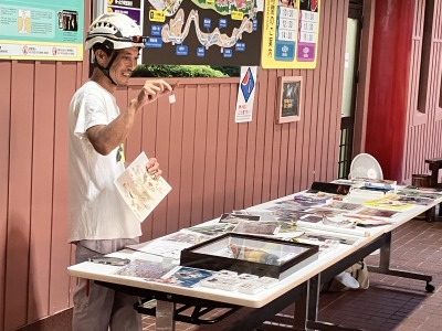 蝙蝠观察会(玉泉洞)2024/8/24正在使用蚊子卷轴进行说明的T老师。今天在观察会开始前都是雨和雷,所以在室内进行了蝙蝠观察会之前进行的演讲。…