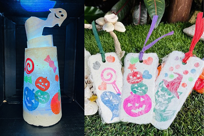 在琉球王国城下町,制作了妖怪咕噜咕噜的琉球日本纸的灯罩等