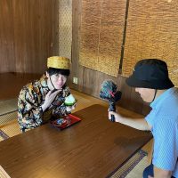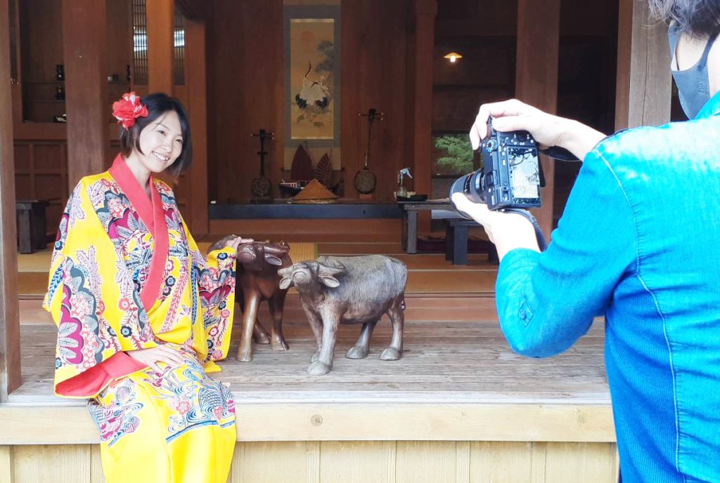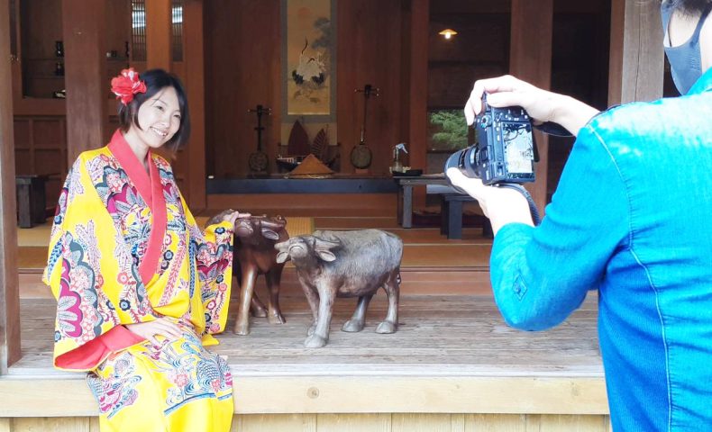 赤瓦古民家的构造、冲绳特有的围墙的石堆、琉装上描绘的红色图案等,摄影工作人员们提出了很多问题。