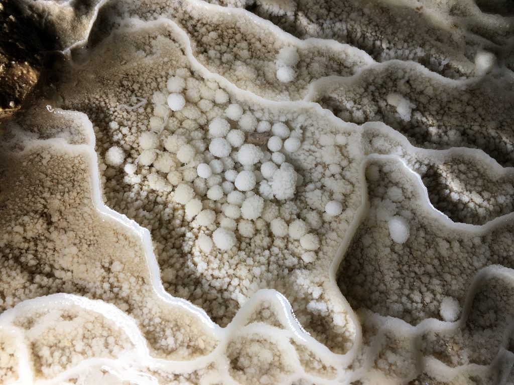 “洞窟珍珠”(Cave Pearls)是在钟乳洞浅水洼中可以看到的球状钟乳石。它的形状有球形、椭圆形、立方体、多边形等,从像沙粒那样小到直径20厘米的巨型。
