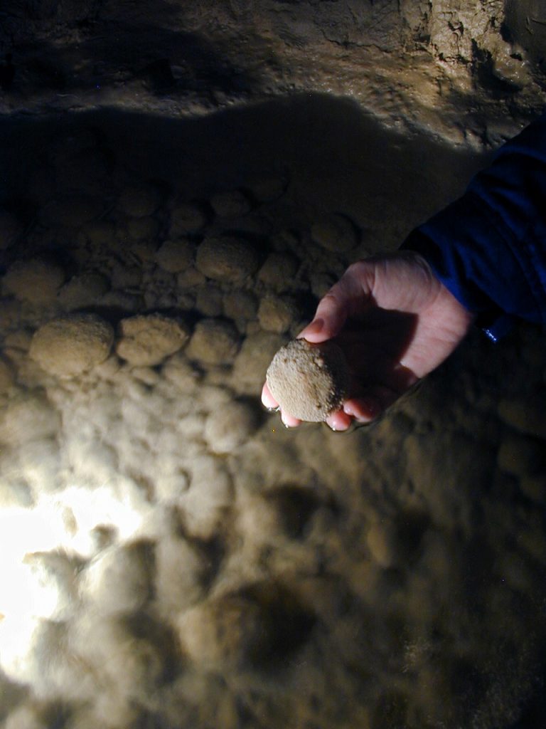 另外,要一边保持球形一边成长,为了不粘附在洞床上,需要通过水流和滴下水的流动,洞窟珍珠经常摇动的环境。