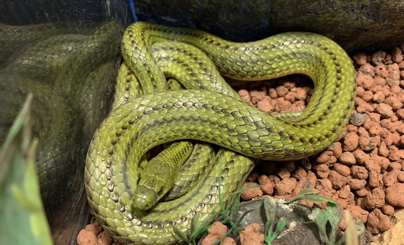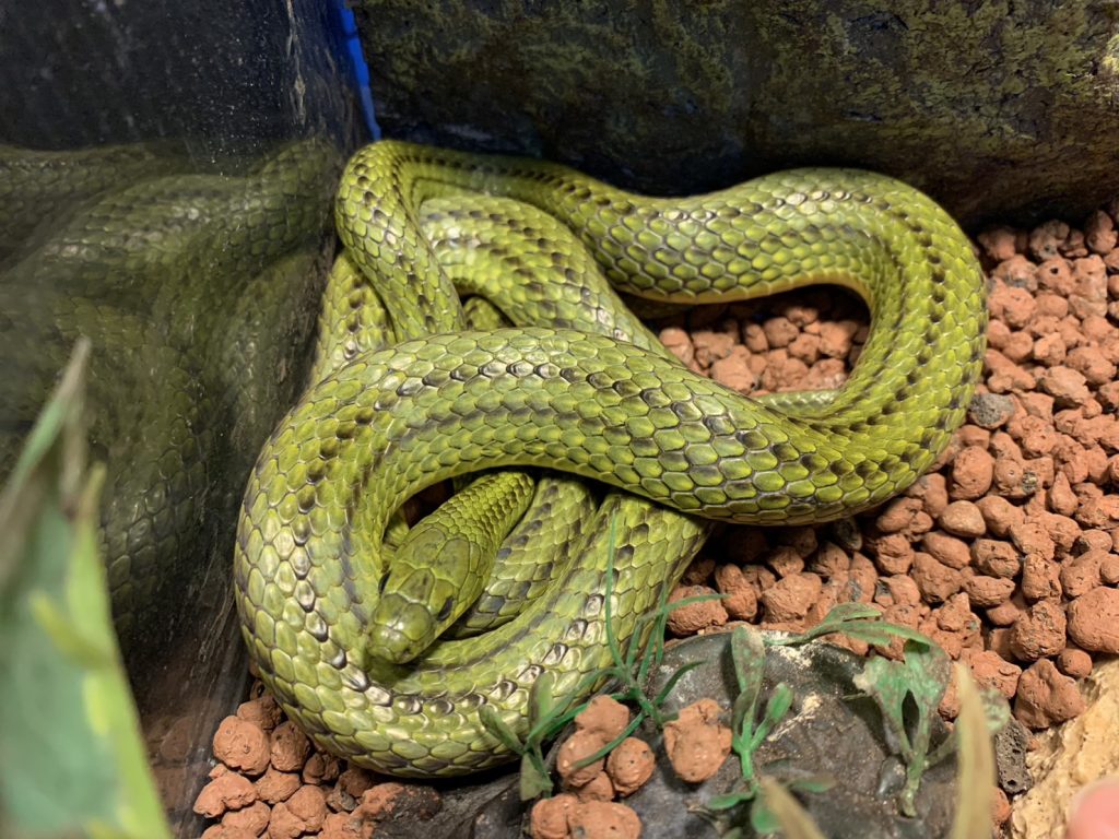 这条蛇叫龙黄瓜蛇。虽然是非常漂亮的蛇,但是吃的东西是蚯蚓这个超偏食的人。
