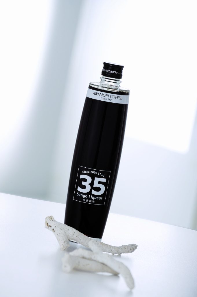 35利口酒泡盛咖啡是使用将风化后的骨骼珊瑚加热到200度以上,烘焙咖啡生豆的“35COFFEE”制成的利口酒。将商品的销售额3.5%用于冲绳县内的珊瑚再生支援金。