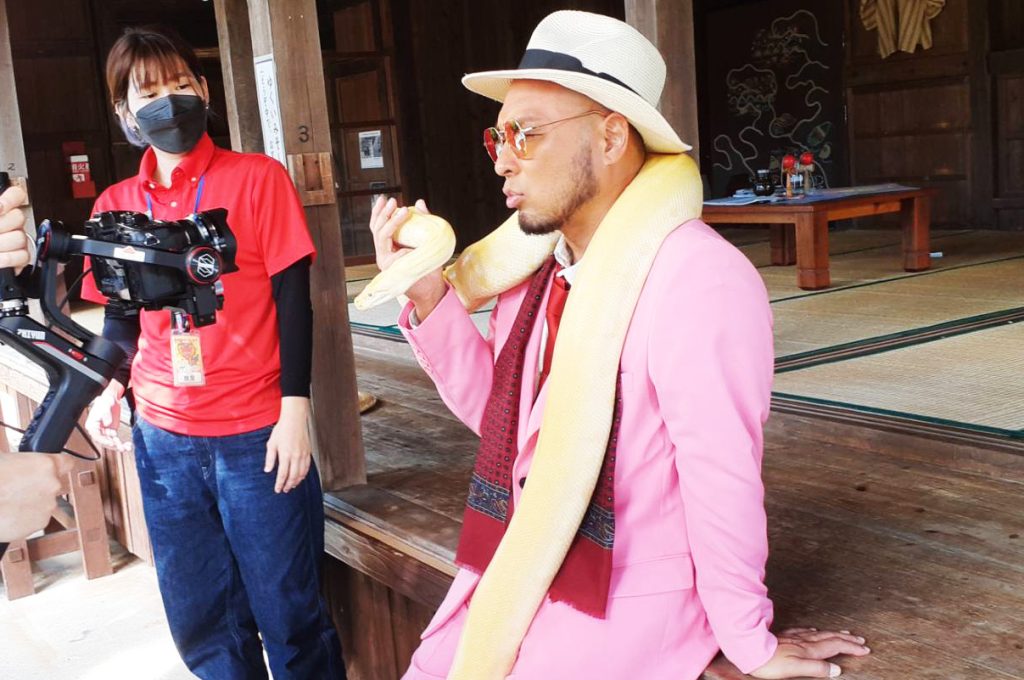 和县内EISA队共演后,和冲绳世界的人气者“幸运白蛇”缅甸鲱鱼也进行了拍摄。玛斯特先生卷起来,总觉得戈杰斯(笑)