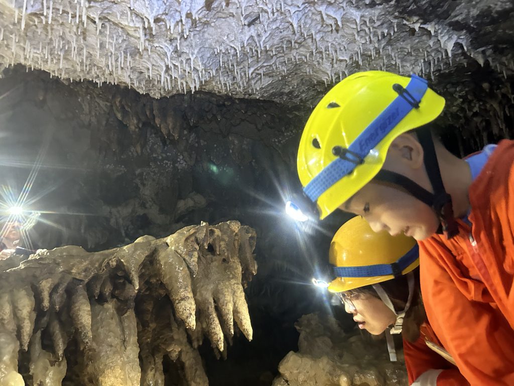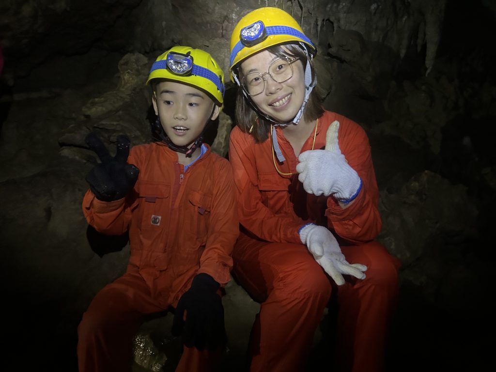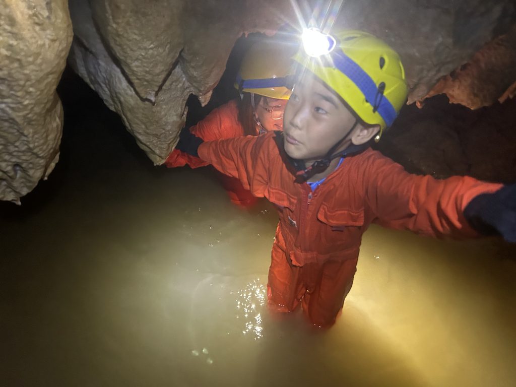 大家把头灯关掉,体验了洞里原本的黑暗!