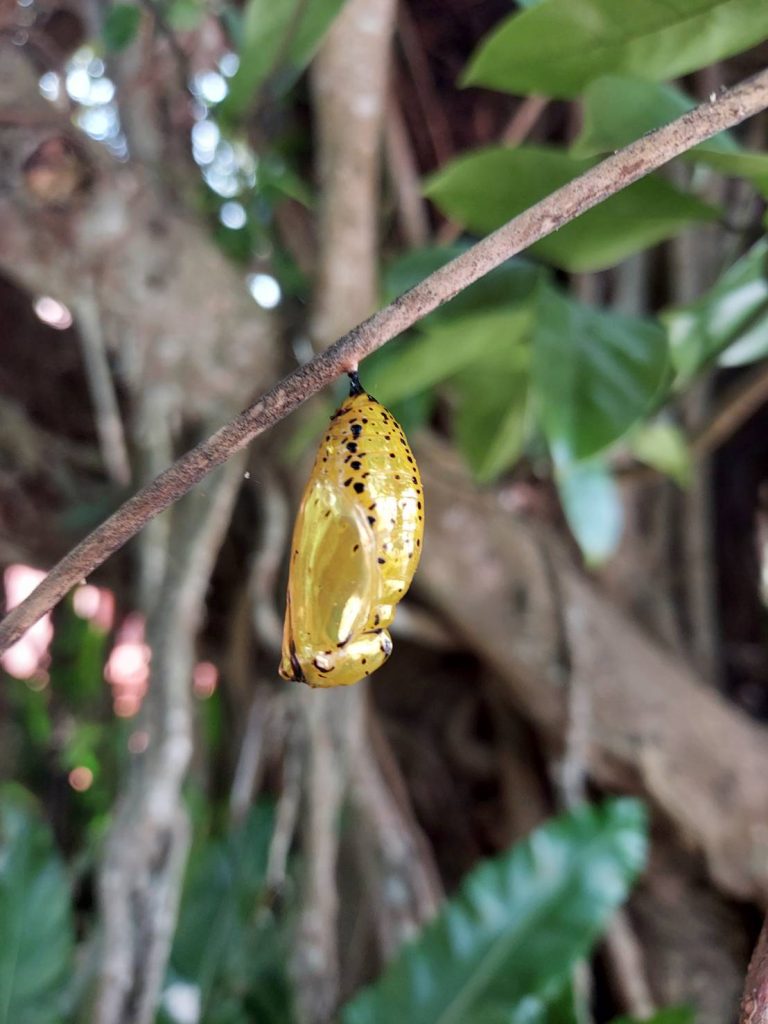 刚变成蛹的时候是黄色的,越来越闪耀。