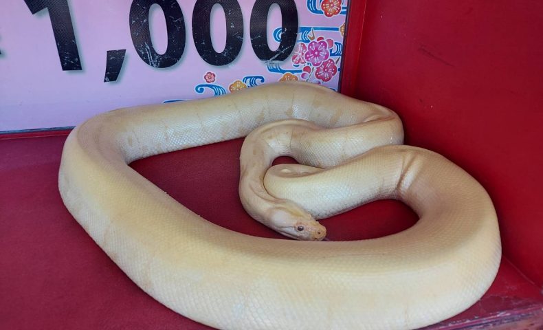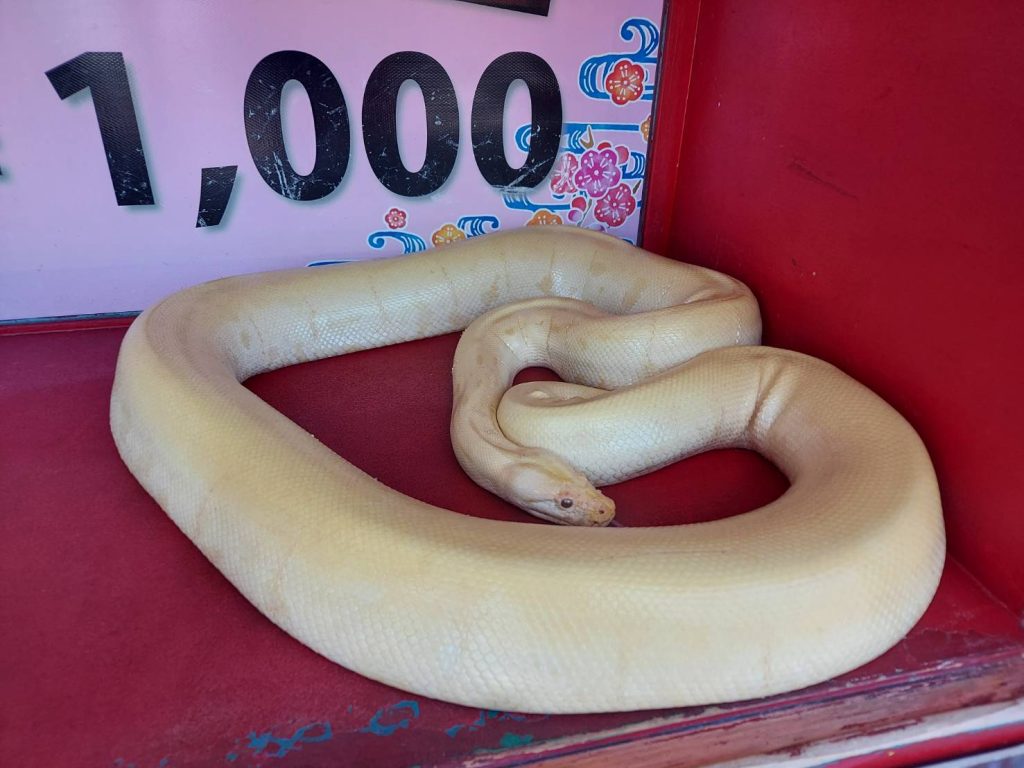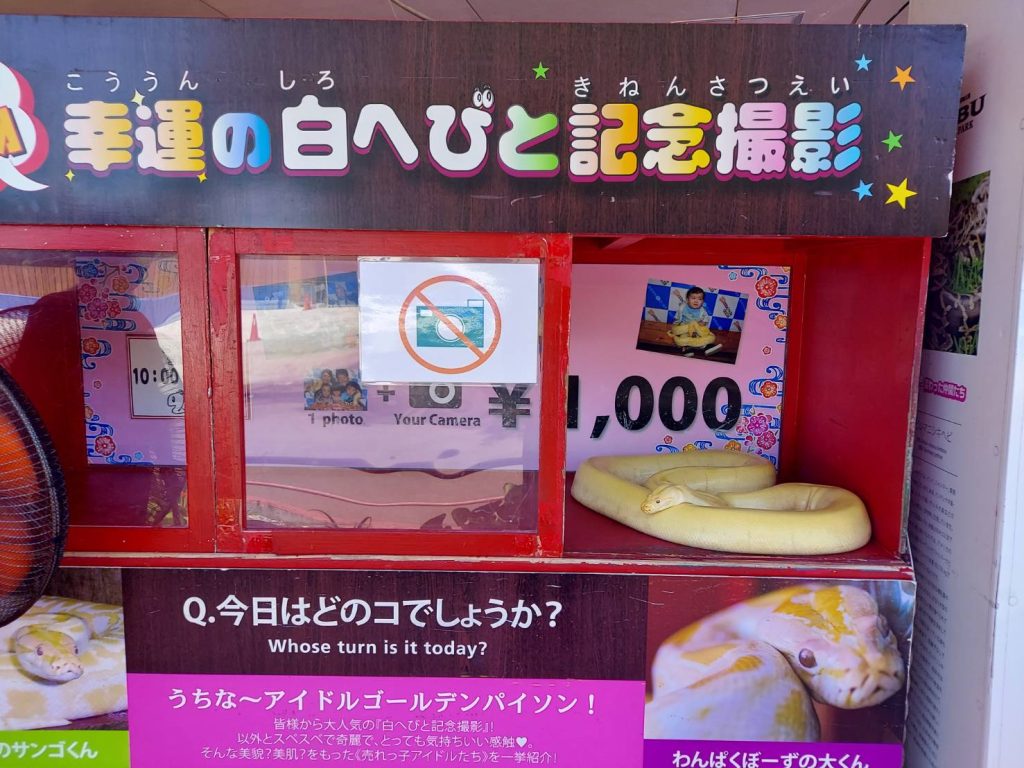 冲绳世界名产“与幸运白蛇拍摄纪念照”