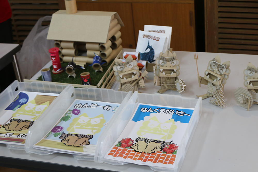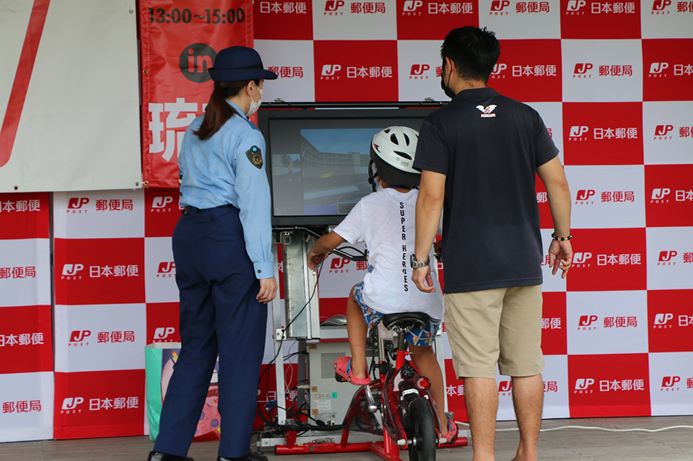 除此之外,还使用不需要的卷芯和塑料瓶的盖子等,工作动物和太鼓的挂件等的“手工体验”,使用自行车模拟器的“交通安全教室”,“琉球邮票展示”和“亲子摩托车教室”等,有趣的活动也很开心。♪