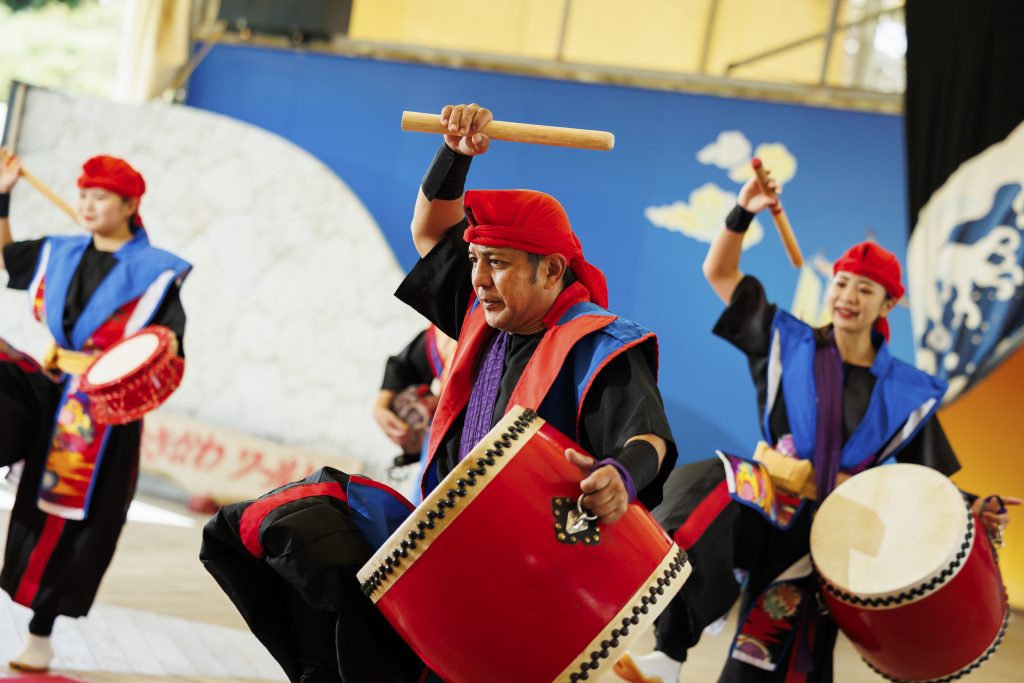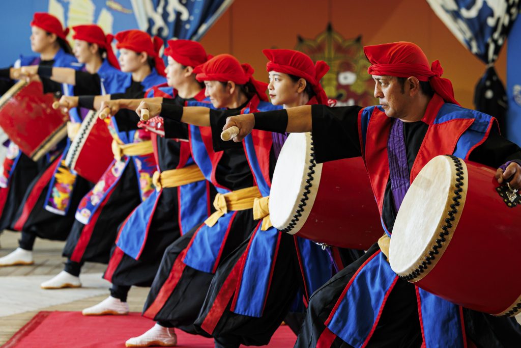 以冲绳的传统艺能为基础,展开了独一无二的舞台,采用了充满魄力的和太鼓演奏。