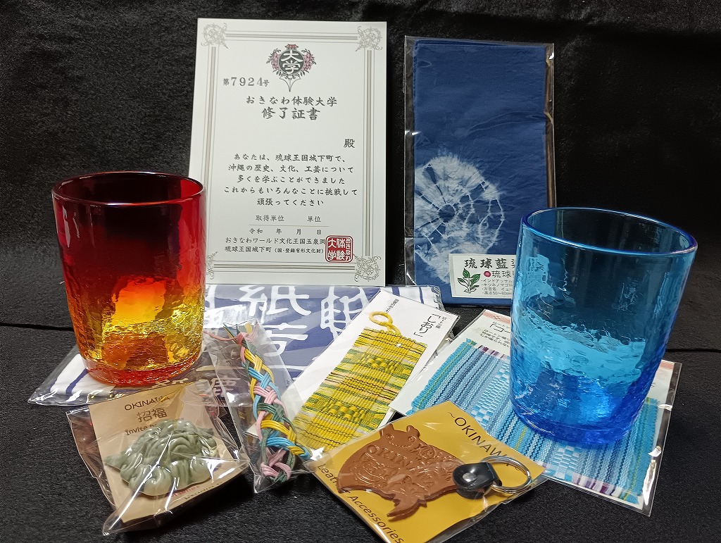 《结业证》和康卡拉三线、琉球玻璃和原创商品