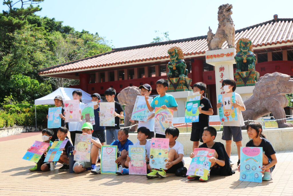 在展示之前,10月8日学生们直接把海报送到了冲绳世界。