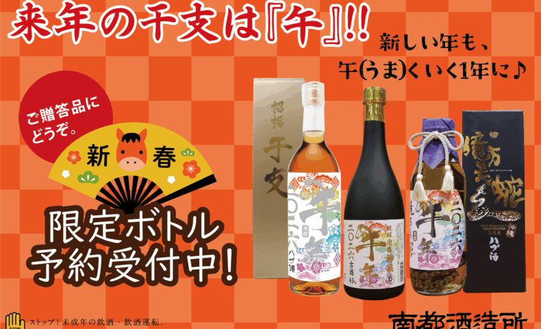 冲绳传统产生的“琉球酒毒蛇酒”和芳醇的“琉球泡盛神泉老酒”的特别瓶子,缠着庆祝新年开幕的“午年天干地支标签”,限量销售!