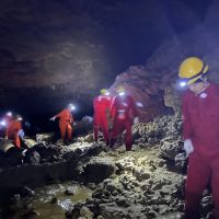探险家们注视的前方是从天花板垂下的约2万株石锥