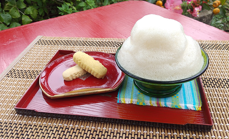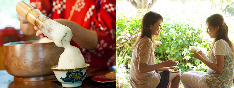 据说是因为用大茶杯咕嘟咕嘟地泡着喝,所以得名。 冲绳独特的茶是喝着像霜淇淋一样热闹的雪白泡沫,以前在出发和庆祝的时候,亲近的人在谈话中被喝过。重视谁都能轻松饮用的心灵接触,没有立法和喝法的礼节和流派。请和琉球的茶点一起享用。
