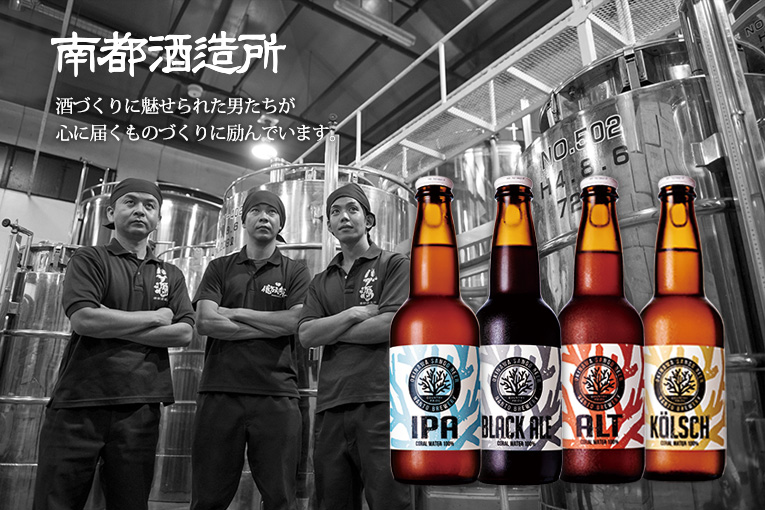 南都造酒所所在的“冲绳世界”位于名水100选的“垣花樋川”所在的南城市,用地内有从珊瑚礁中诞生的钟乳洞“玉泉洞”。从30万年的岁月创造出的钟乳洞地下100米汲上来的水,作为富含钙和矿物质的水而闻名。 “OKINAWA SANGO BEER”是拘泥于占啤酒9成的重要素材“水”,100%使用了珊瑚水的啤酒而诞生的。