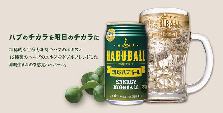 据说光靠水就能生存100天以上的HABU(龟壳花蛇)不可思议的生命力。 冲绳出生的新感觉高球“琉球蛇酒苏打特调”是将拥有神秘生命力的HABU(龟壳花蛇)精华和香味浓郁的13种香草精华双混合而成的。